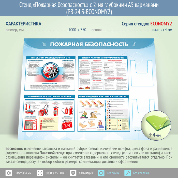 Стенд «Пожарная безопасность» с 2-мя глубокими А5 карманами (PB-24.3-ECONOMY2) в Иркутске купить
