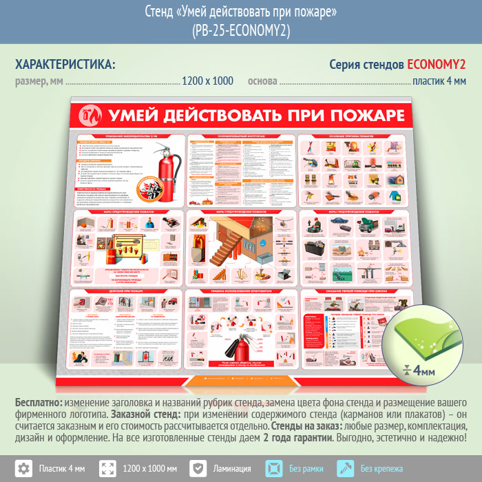 Стенд «Умей действовать при пожаре» (PB-25-ECONOMY2) в Иркутске купить