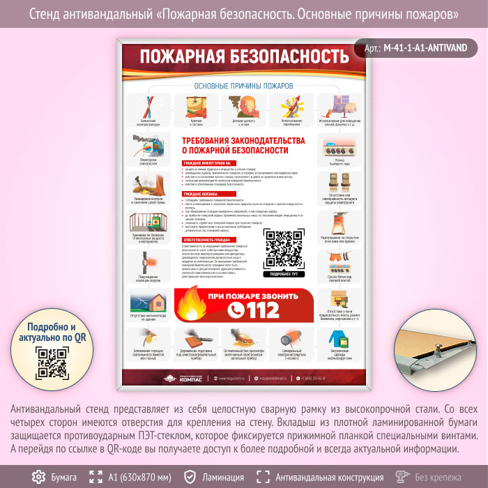 Стенд антивандальный «Пожарная безопасность. Основные причины пожаров» (M-41-1-А1-ANTIVAND) в Иркутске купить