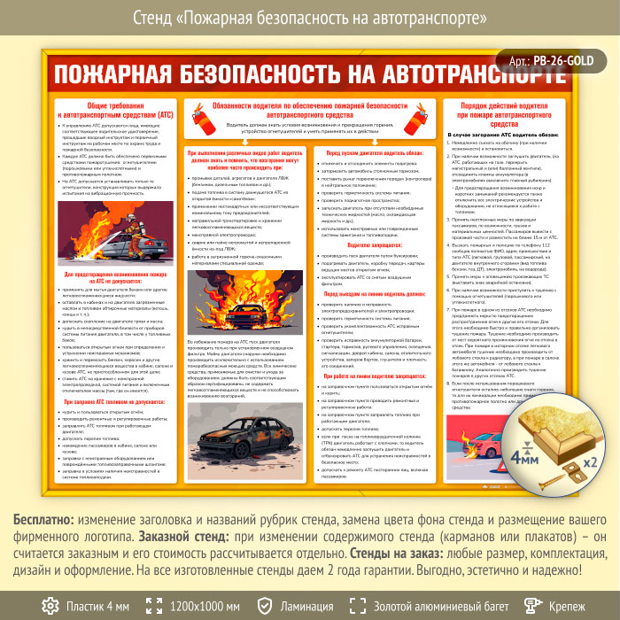 Стенд «Пожарная безопасность на автотранспорте» (PB-26-GOLD) в Иркутске купить