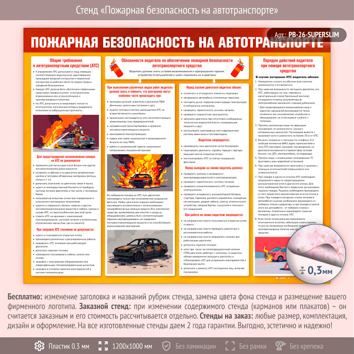 Стенд «Пожарная безопасность на автотранспорте» (PB-26-SUPERSLIM) в Иркутске купить