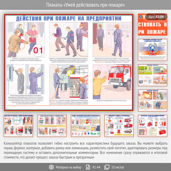 Плакаты «Умей действовать при пожаре» (ВЗ-04, 10 листов) в Иркутске купить