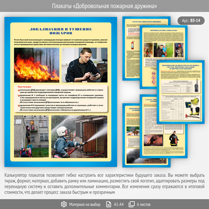 Плакаты «Добровольная пожарная дружина» (ВЗ-14, 6 листов) в Иркутске купить