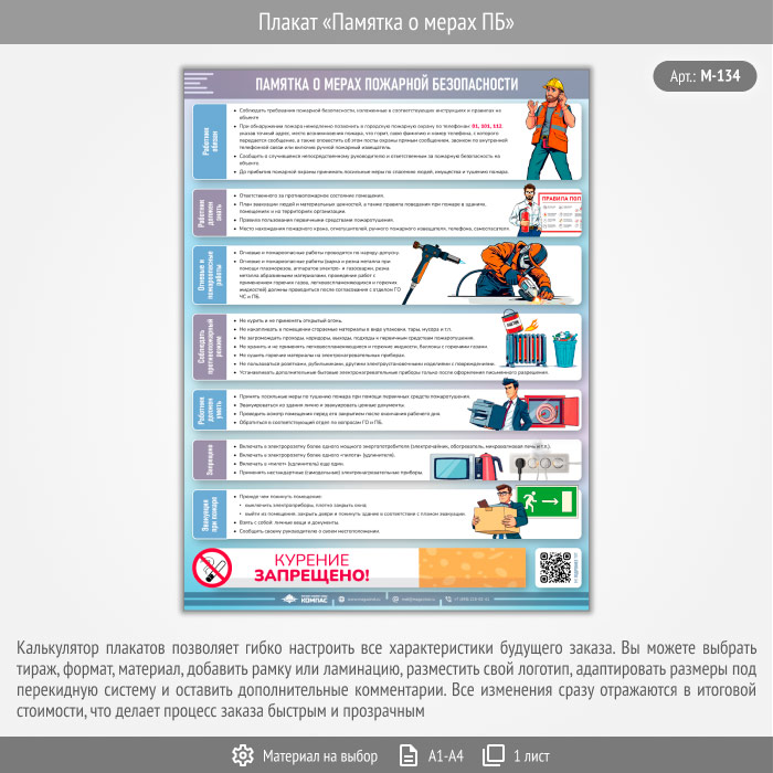 Плакат «Памятка о мерах ПБ» с QR (М-134, 1 лист) в Иркутске купить