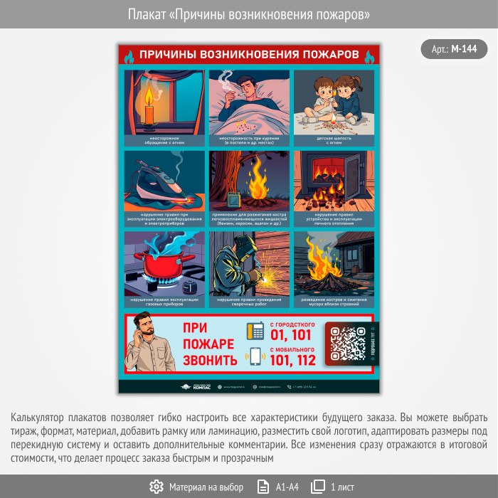 Плакат «Причины возникновения пожаров» с QR (М-144, 1 лист) в Иркутске купить