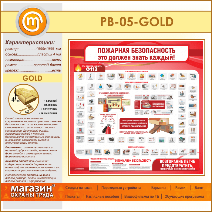 Стенд «Пожарная безопасность. Это должен знать каждый» (PB-05-GOLD) в Иркутске купить