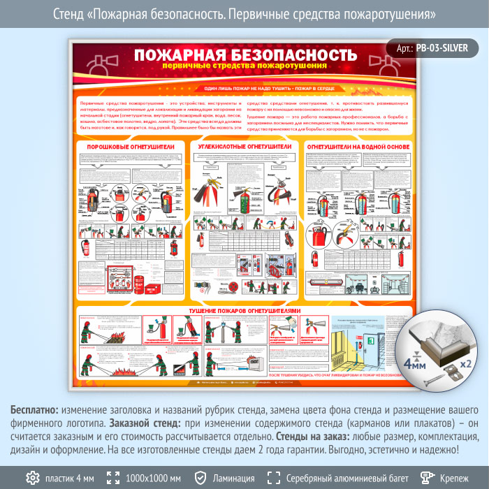 Стенд «Пожарная безопасность. Первичные средства пожаротушения» (PB-03-SILVER) в Иркутске купить