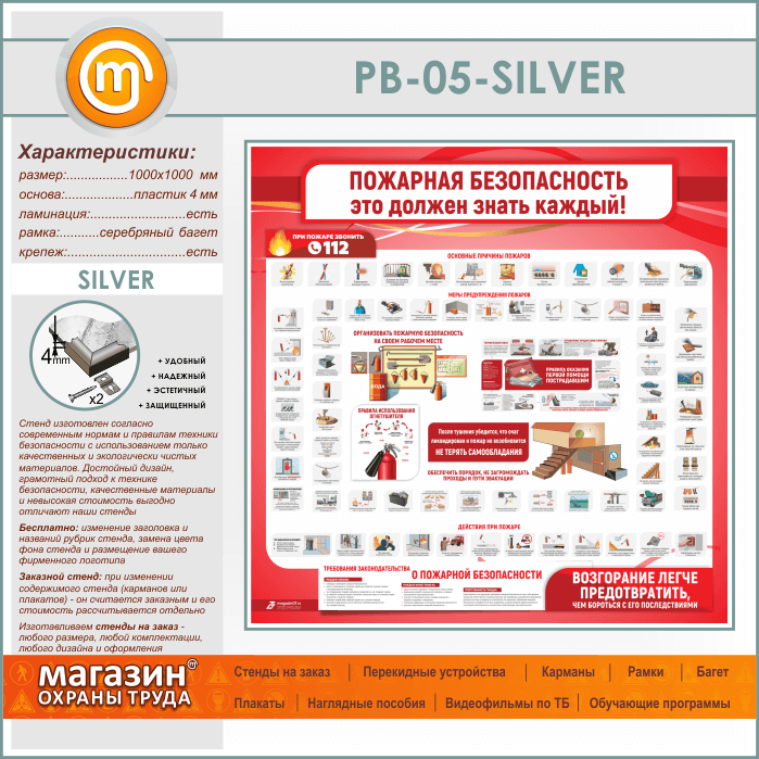 Стенд «Пожарная безопасность. Это должен знать каждый» (PB-05-SILVER) в Иркутске купить