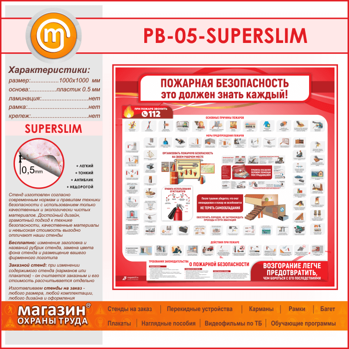 Стенд «Пожарная безопасность. Это должен знать каждый» (PB-05-SUPERSLIM) в Иркутске купить