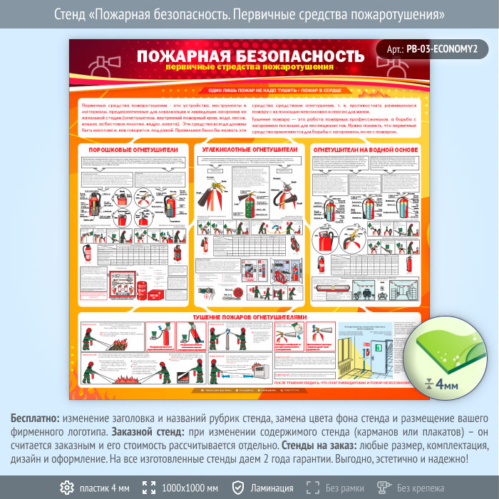 Стенд «Пожарная безопасность. Первичные средства пожаротушения» (PB-03-ECONOMY2) в Иркутске купить