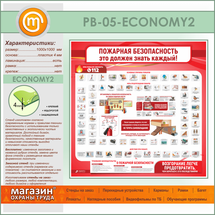 Стенд «Пожарная безопасность. Это должен знать каждый» (PB-05-ECONOMY2) в Иркутске купить