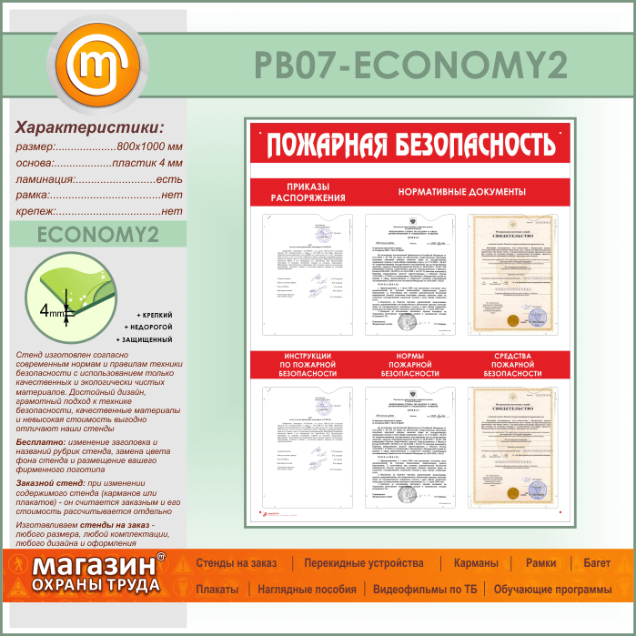 Стенд «Пожарная безопасность» с 6 карманами (PB-07-ECONOMY2) в Иркутске купить