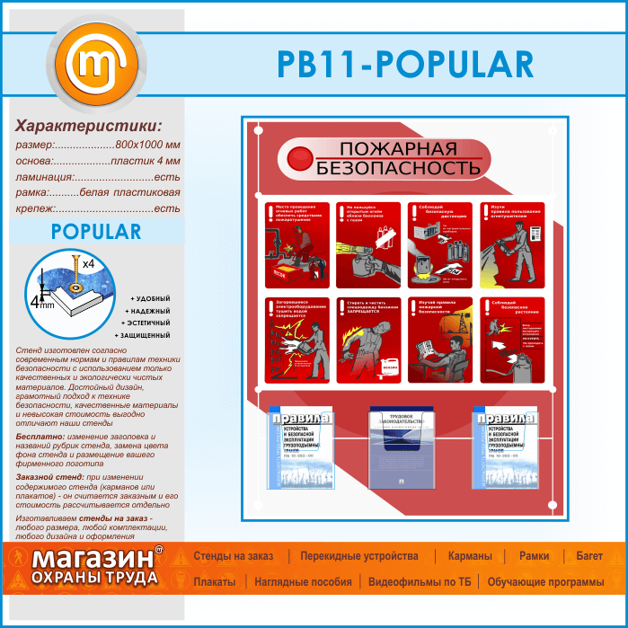 Стенд «Стенд пожарная безопасность в строительстве» с 3 объемными карманами (PB-11-POPULAR) в Иркутске купить