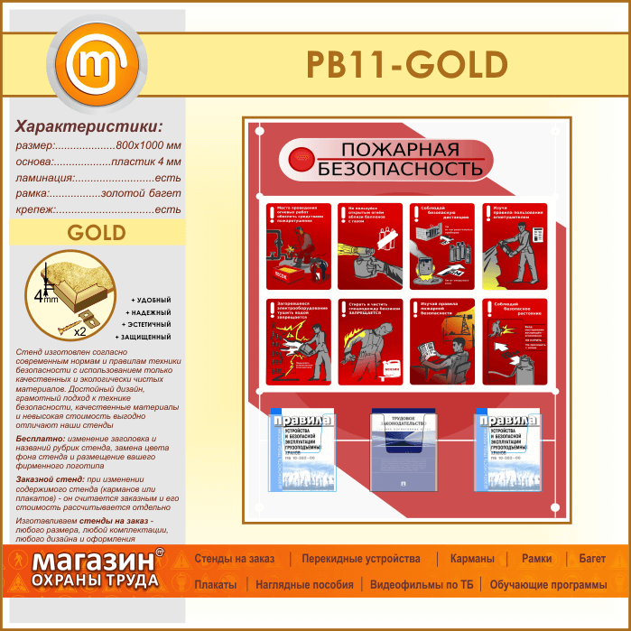 Стенд «Стенд пожарная безопасность в строительстве» с 3 объемными карманами (PB-11-GOLD) в Иркутске купить