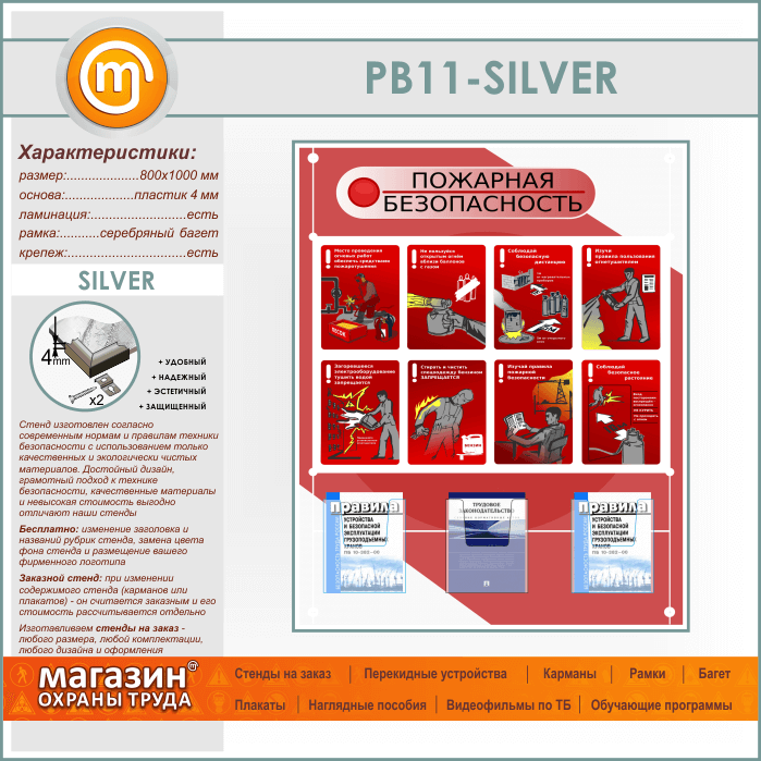 Стенд «Стенд пожарная безопасность в строительстве» с 3 объемными карманами (PB-11-SILVER) в Иркутске купить