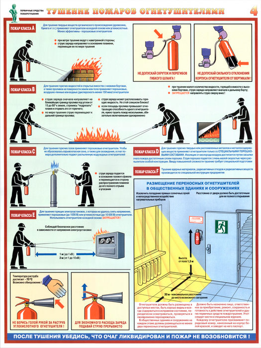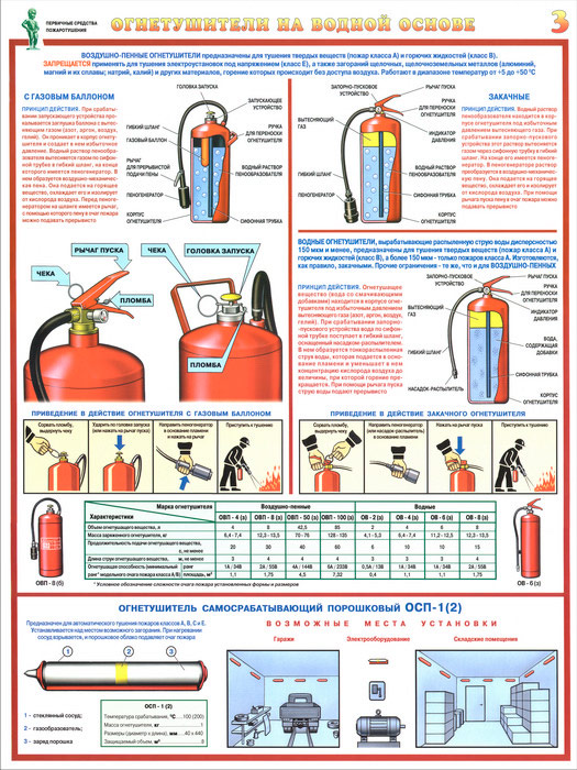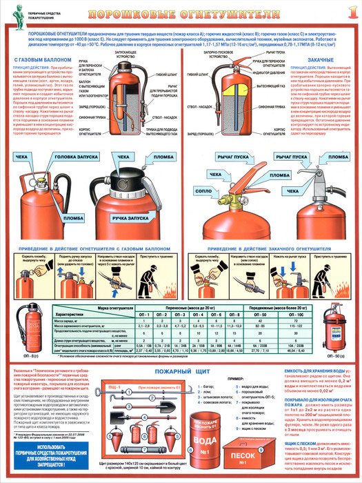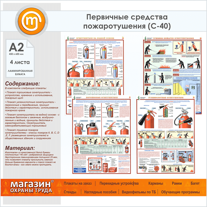 Плакаты «Первичные средства пожаротушения» (С-40, ламинированная бумага, А2, 4 листа) в Иркутске купить