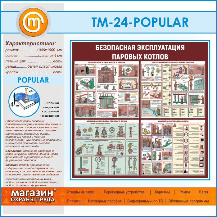 Стенд «Безопасная эксплуатация паровых котлов» (TM-24-POPULAR)