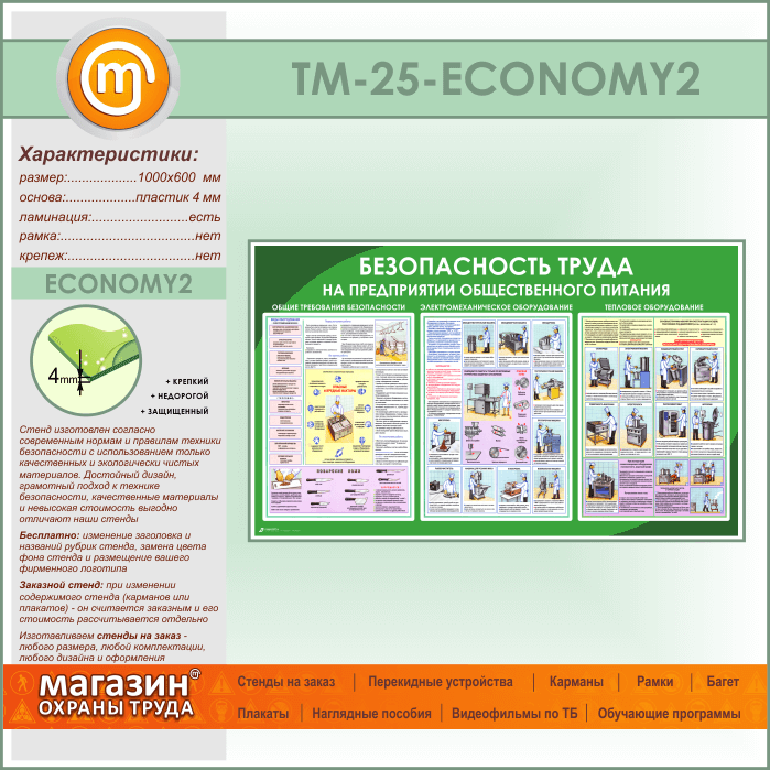 Стенд «Безопасность труда на предприятиях общественного питания» (TM-25-ECONOMY2) в Иркутске купить