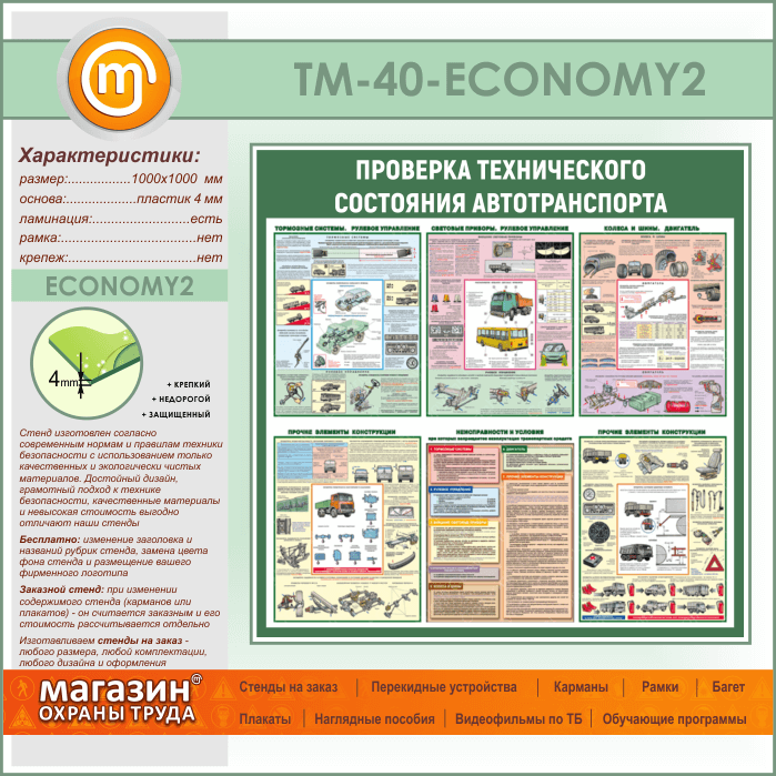 Стенд «Проверка технического состояния автотранспорта» (TM-40-ECONOMY2) в Иркутске купить