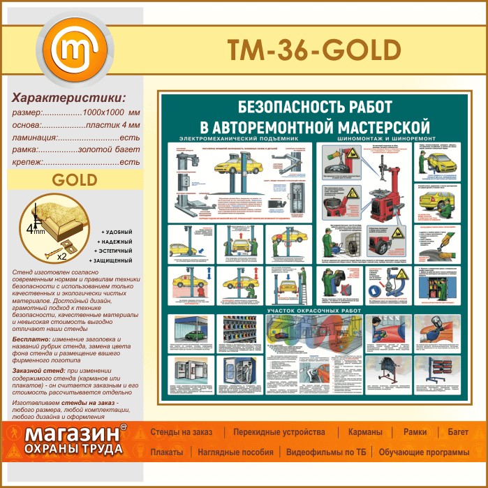Стенд «Безопасность работ в авторемонтной мастерской» (TM-36-GOLD) в Иркутске купить