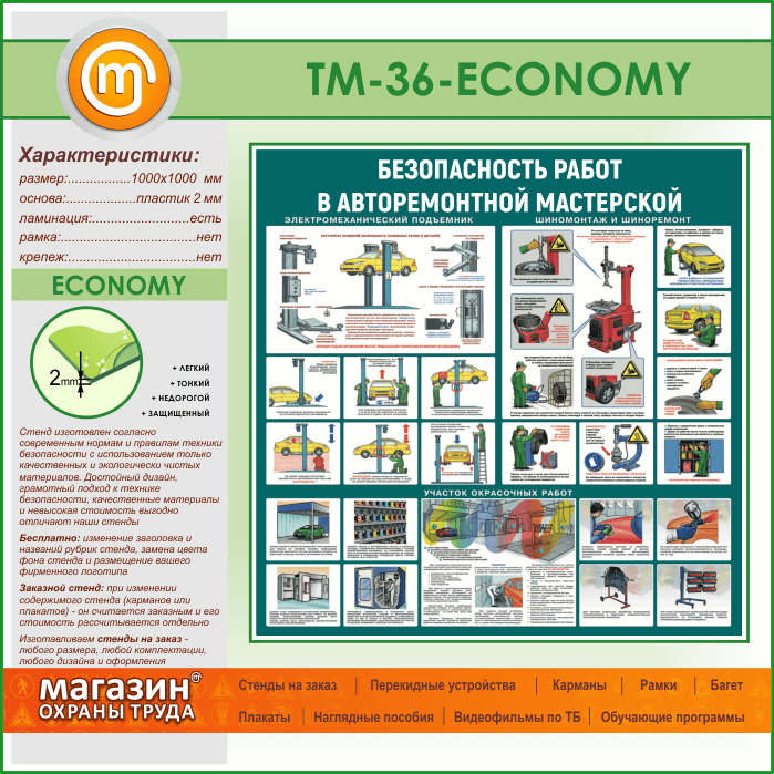 Стенд «Безопасность работ в авторемонтной мастерской» (TM-36-ECONOMY) в Иркутске купить