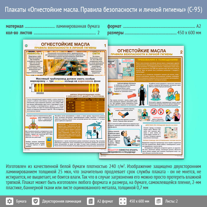 Плакаты «Огнестойкие масла. Правила безопасности и личной гигиены» (С-95, ламинированная бумага, А2, 2 листа) в Иркутске купить