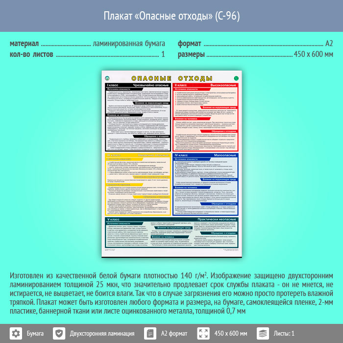 Плакат «Опасные отходы» (С-96, ламинированная бумага, А2, 1 лист) в Иркутске купить