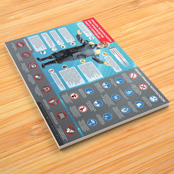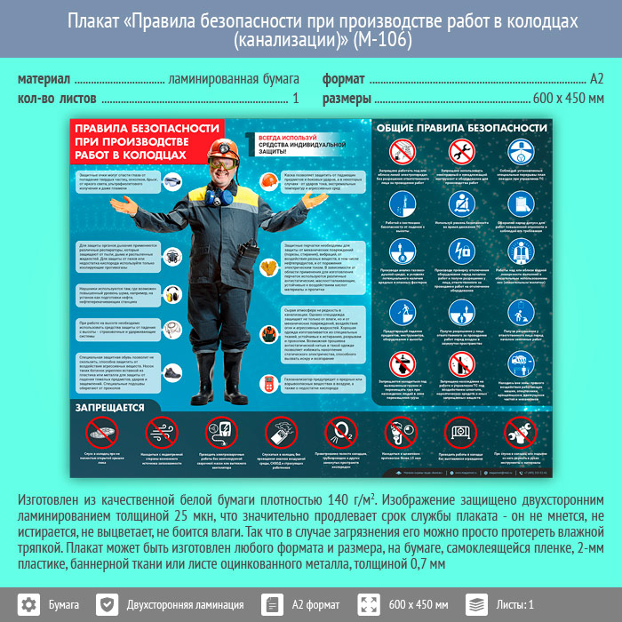 Плакат «Правила безопасности при производстве работ в колодцах (канализации)» (М-106, ламинированная бумага, А2, 1 лист) в Иркутске купить