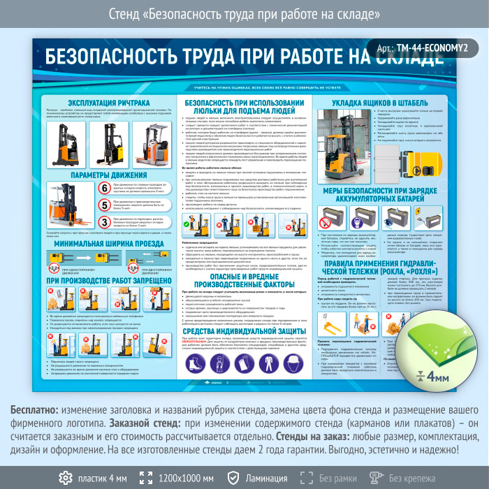 Стенд «Безопасность труда при работе на складе» (TM-44-ECONOMY2) в Иркутске купить