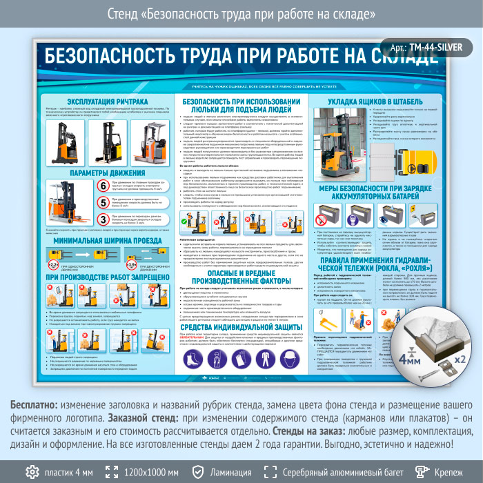 Стенд «Безопасность труда при работе на складе» (TM-44-SILVER) в Иркутске купить