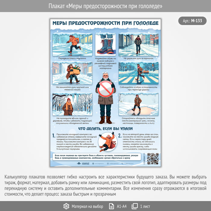 Плакат «Меры предосторожности при гололеде» с QR (М-133, 1 лист) в Иркутске купить