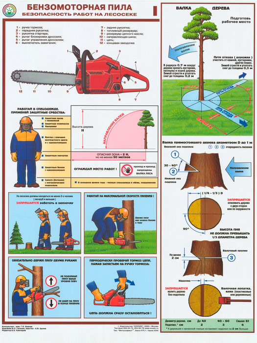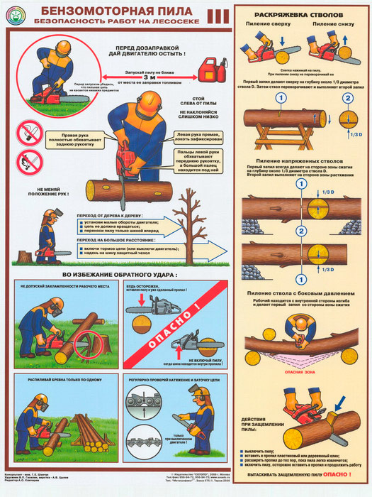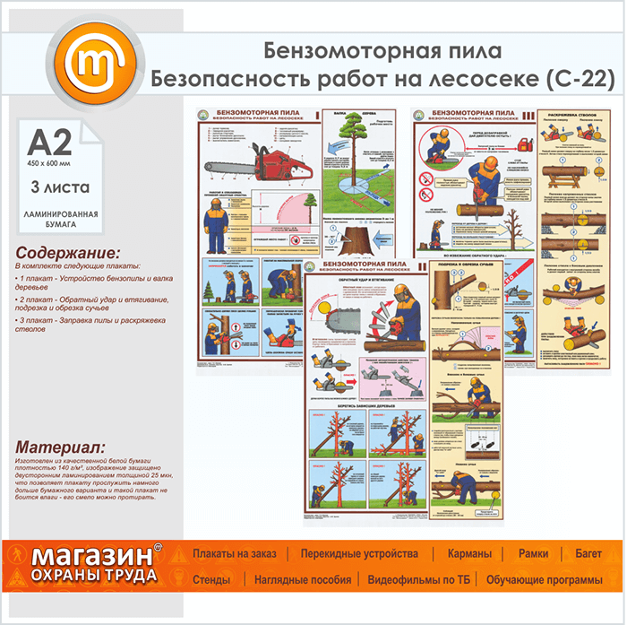 Плакаты «Бензомоторная пила. Безопасность работ на лесосеке» (С-22, ламинированная бумага, А2, 3 листа) в Иркутске купить