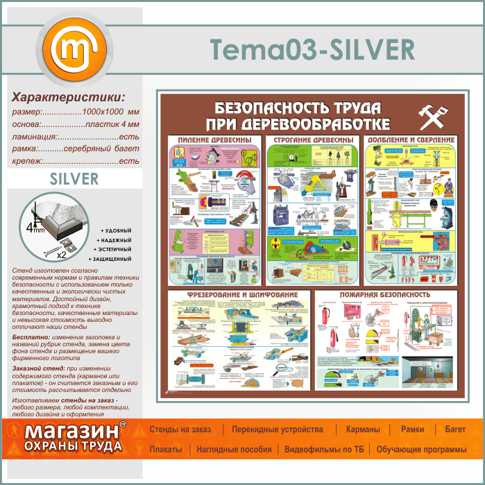 Стенд «Безопасность труда при деревообработке» (TM-03-SILVER) в Иркутске купить