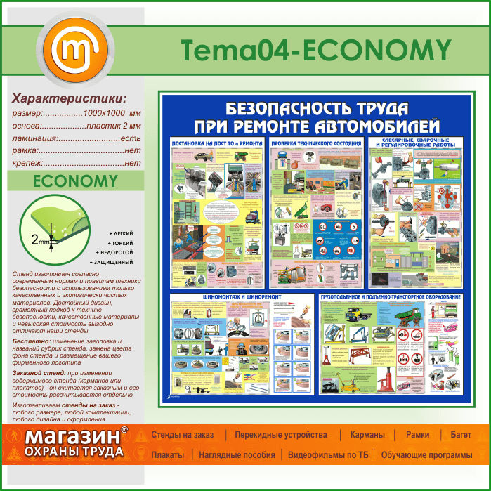 Стенд «Безопасность труда при ремонте автомобилей» (TM-04-ECONOMY) в Иркутске купить