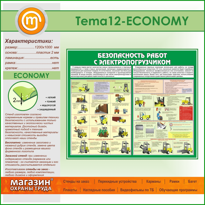 Стенд «Безопасность работ с электропогрузчиком» (TM-12-ECONOMY) в Иркутске купить