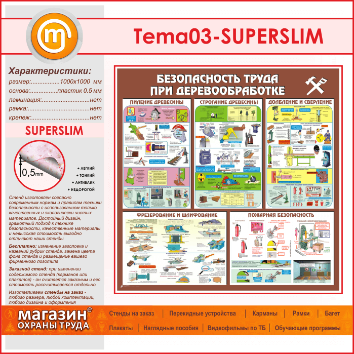 Стенд «Безопасность труда при деревообработке» (TM-03-SUPERSLIM) в Иркутске купить