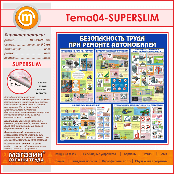 Стенд «Безопасность труда при ремонте автомобилей» (TM-04-SUPERSLIM) в Иркутске купить
