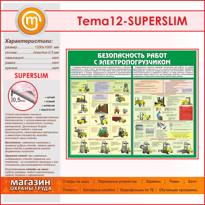 Стенд «Безопасность работ с электропогрузчиком» (TM-12-SUPERSLIM) в Иркутске купить