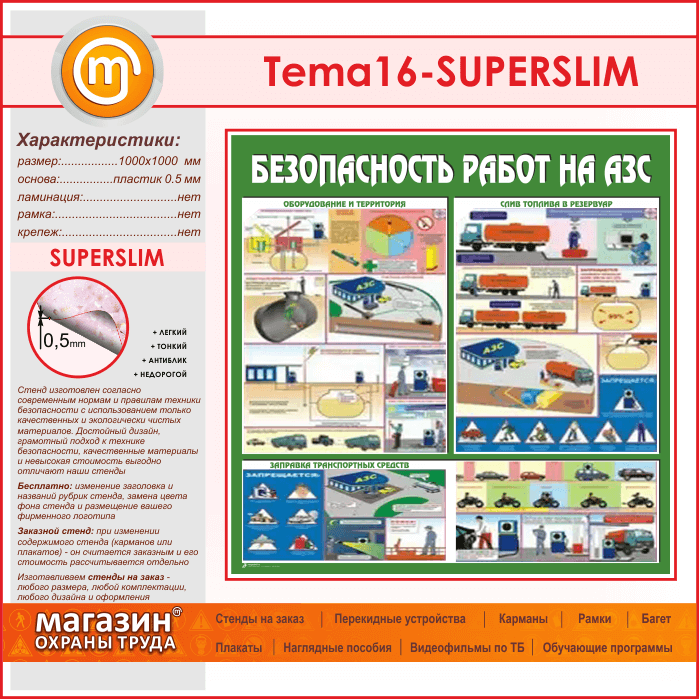 Стенд «Безопасность работ на автозаправочных станциях» (TM-16-SUPERSLIM) в Иркутске купить