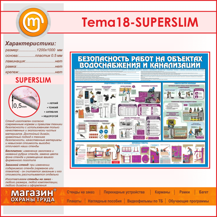Стенд «Безопасность работ на объектах водоснабжения и канализации» (TM-18-SUPERSLIM) в Иркутске купить