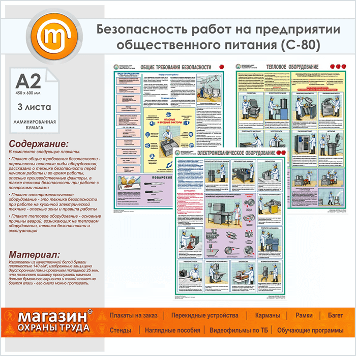 Плакат « Правила охраны труда на предприятии общественного питания» (С-80, ламинированная бумага, А2, 3 листа) в Иркутске купить